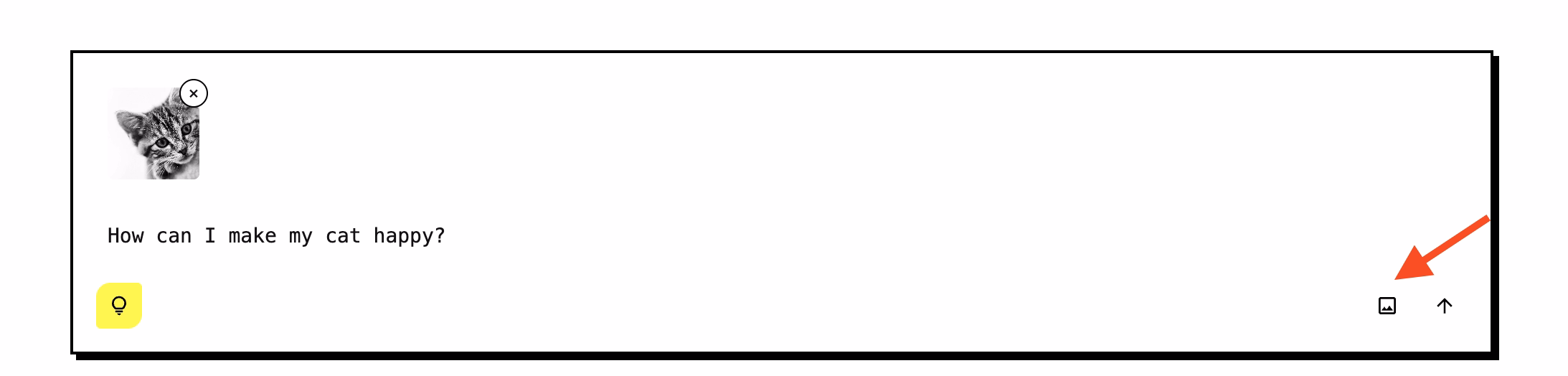 In the "Prompt" section, you can upload images as attachments to the user prompts. Click the "image" icon in the message input to attach an image from your device. The image will be sent alongside your text message: